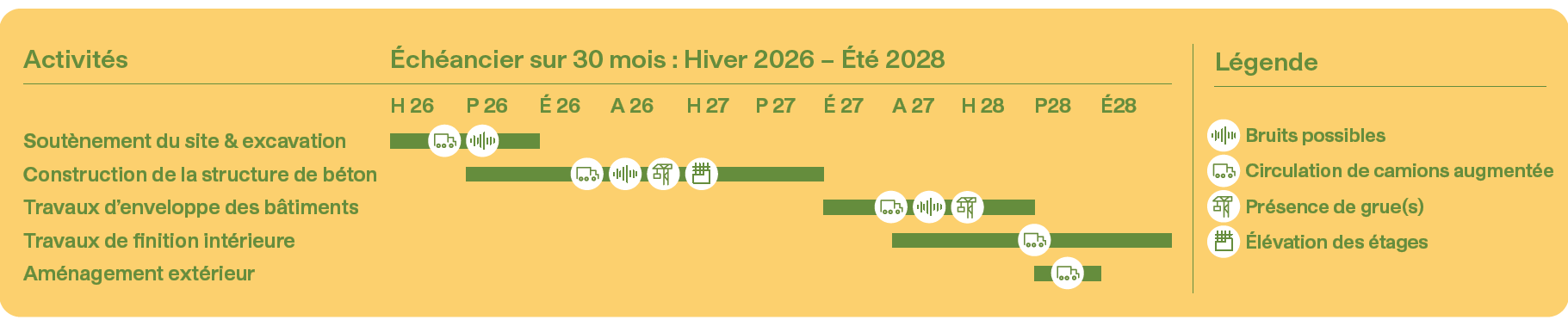 Au cours des prochaines semaines, les équipes procéderont à l’excavation du site afin d’atteindre la profondeur nécessaire pour accueillir la future structure. Parallèlement les travaux de soutènement, dont l’installation des pieux et des murs berlinois, seront effectués afin de stabiliser le terrain avant de débuter l’élévation du complexe.
